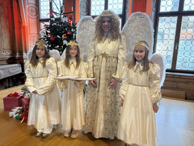 Begleitet wird das Landsberger Christkindl auch dieses Jahr von einer Engelschar, darunter wieder ein Knaben-Engel. Die Gewänder der Engel wurden von den Heimerer Schulen gespendet und von der