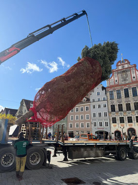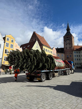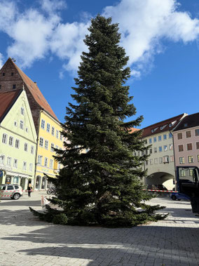 Am Montag, 3. November 2025 wurde der diesjährige Christbaum auf dem Hauptplatz in Landsberg aufgestellt. Die etwa 44 Jahre alte und 14 Meter hohe Nordmanntanne stammt aus dem Garten der Familie